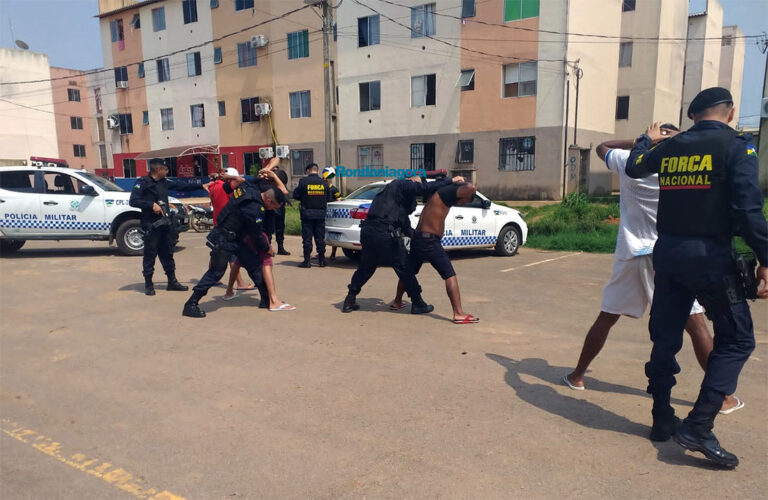 No condomínio Orgulho do Madeira, na zona leste da capital, várias pessoas foram abordadas, com o objetivo de localizar possíveis ilícitos, como arma de fogo, droga, foragidos do sistema prisional ou apenados monitorados por tornozeleira fora de rota.